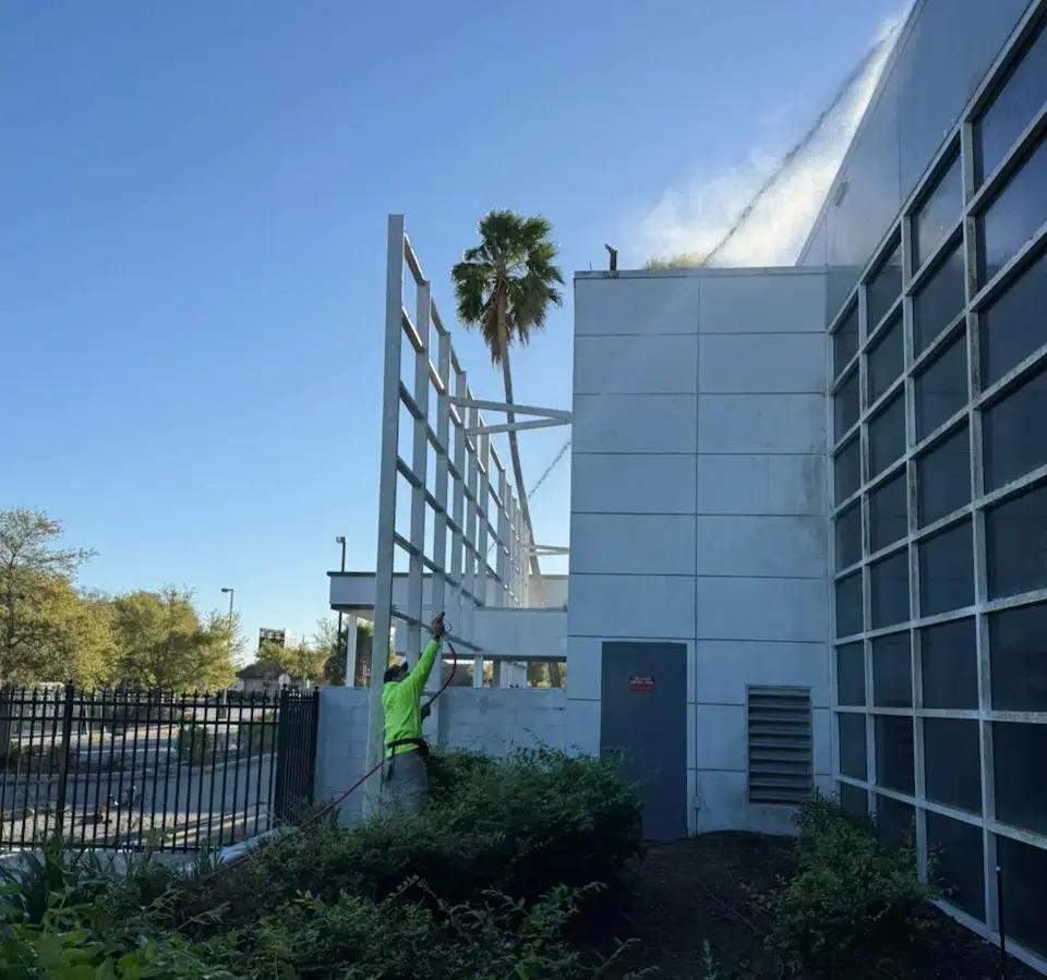 Most Orlando businesses schedule exterior cleaning once or twice per year, depending on location and exposure to traffic, weather, and pollution. Regular washing preserves your building’s appearance and prevents long-term damage.